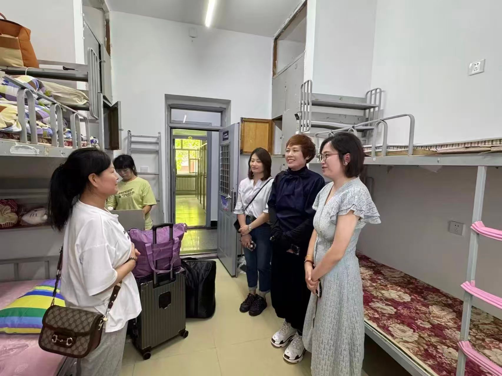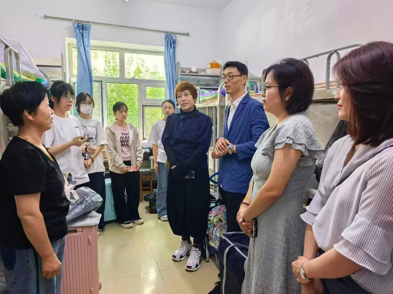 院领导们走进每一间寝室,与新生们亲切交谈,细致地询问日常生活用品准备、新环境的适应情况,关怀备至。在交流中,新生们也积极分享自己的感受,对即将开启的大学生活充满期待,同时也提出了一些自己的困惑,辅导员们都耐心地给予解答和建议。