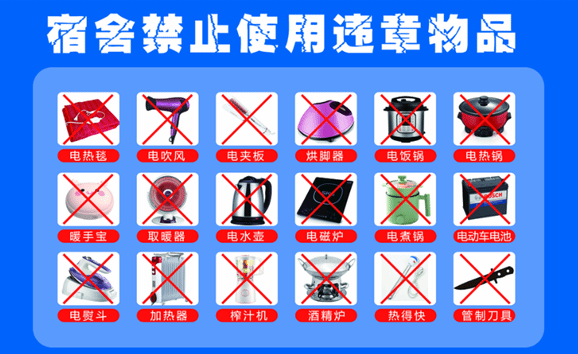 宿舍作为大家新的家园,同时也是一个典型的人员密集地点,因此要求我们规范安全用电,远离火灾隐患。
