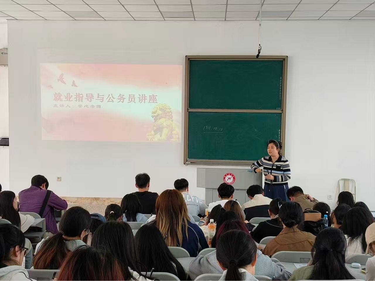 (文/李想)为帮助同学们清晰认知就业形势,合理规划职业方向。经济管理学院于9月17日下午,在8号楼8402举办大学生就业指导与公务员讲座。本次讲座由安心老师主讲,我院同学积极参与。