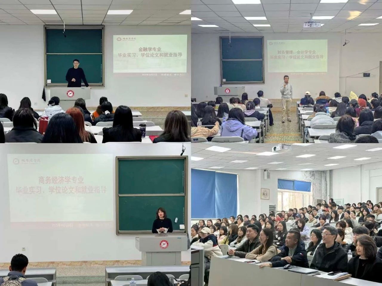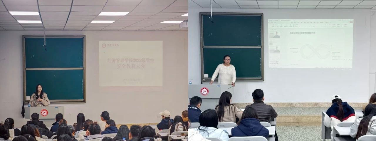 随后,各系主任通过真实案例讲述实习期间注意事项,解读《经济管理学院毕业实习管理办法》,明确高质量完成实习环节要求,并聚焦行业动态,梳理当前就业趋势,指导学生如何将专业知识转化为职场竞争力。另外,老师们也向同学们详细解读了毕业论文的选题原则、撰写规范以及答辩流程,要求学生们在选题时要紧密结合专业方向,注重选题的规范性和创新性,并结合了教育部本科毕业论文抽检工作的最新要求,重申了学术诚信和论文质量的重要性,强调同学们必须认真对待每个环节。从毕业到就业的全流程对同学们进行指导,为接下来的学业安排和就业实践指明了方向。同学们纷纷表示,这场“双保障”分享会既解决了毕业环节的困惑,又扫清了就业签约的迷雾,为走向职场新征程注入了信心与动力。
