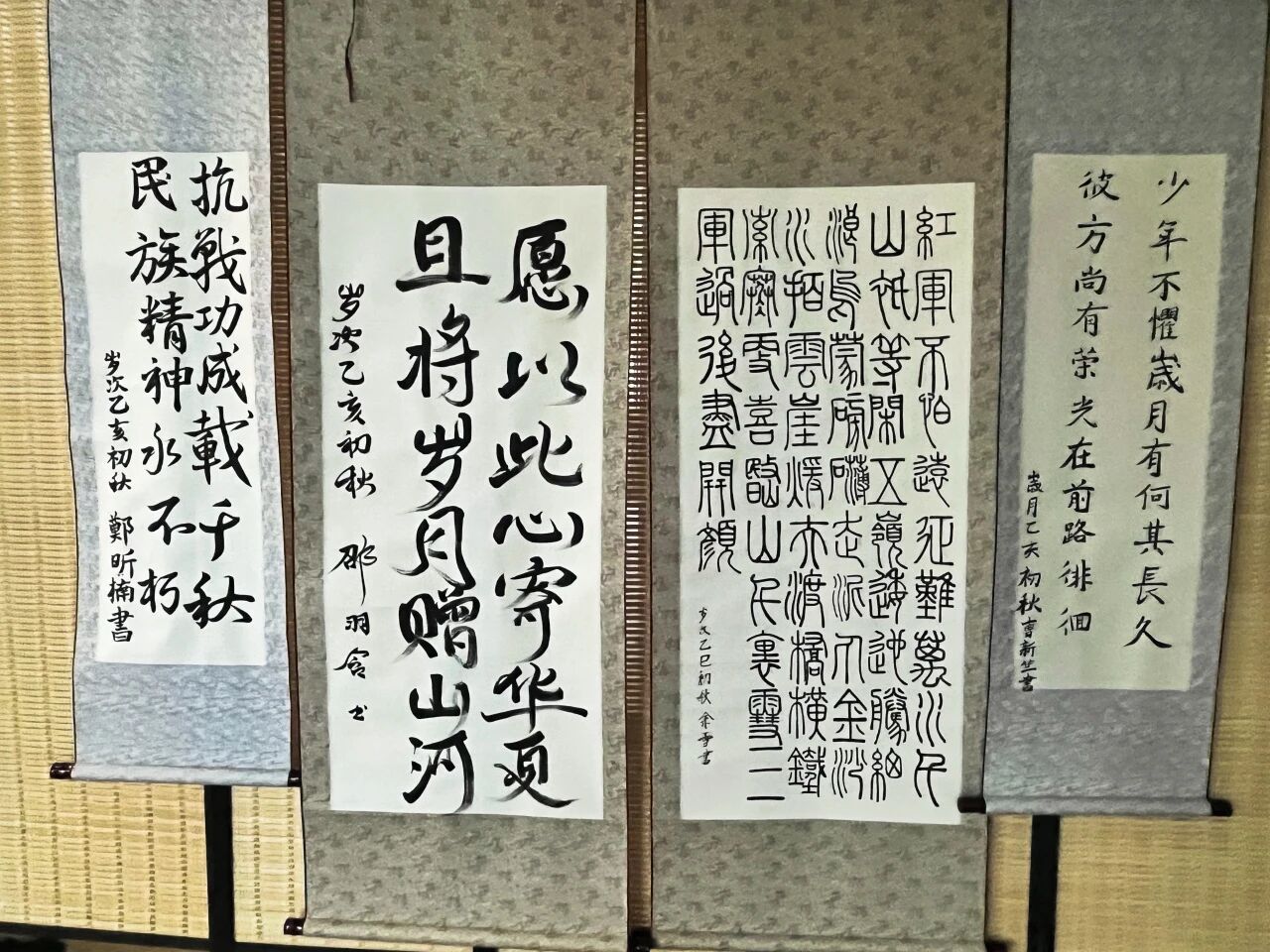 此次展览书画作品内容丰富、形式多元,涵盖革命历史场景、英雄人物群像及爱国诗词名句等,旨在用东北抗联精神育人,做东北抗联精神传人,引导广大青年学生坚定理想信念、厚植家国情怀。展出期间师生观展热情高涨,大家在作品前驻足欣赏、轻声交流,于笔墨间重温反法西斯战争峥嵘岁月,感悟革命先辈坚定信念。