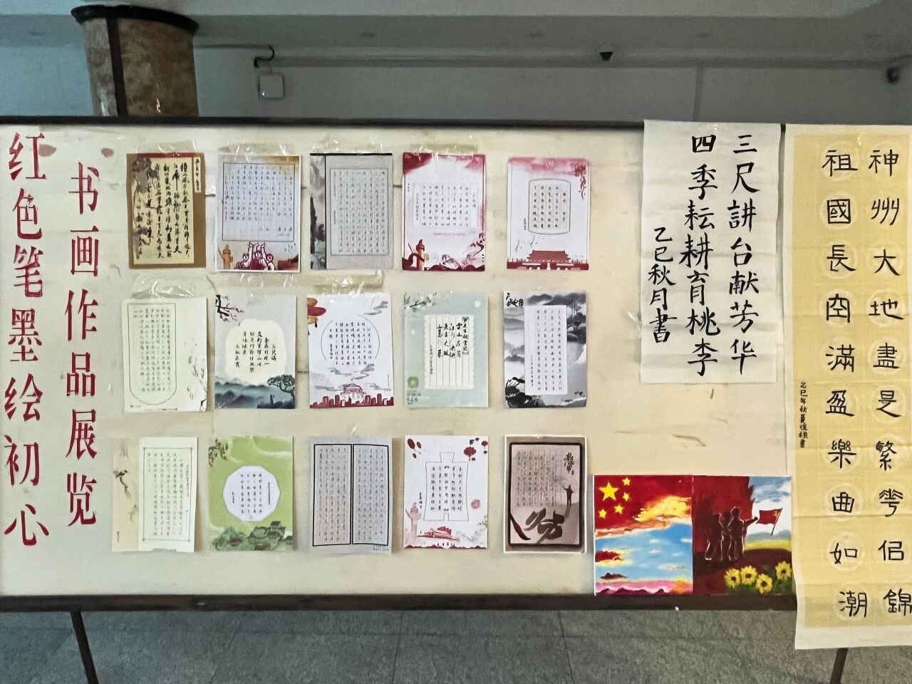 (文/王佳琦)为深入学习贯彻习近平总书记关于教育的重要论述和"把红色资源利用好、把红色传统发扬好、把红色基因传承好"的重要指示精神,全面落实立德树人根本任务,弘扬以爱国主义为核心的民族精神,传承以伟大建党精神为源头的中国共产党人精神谱系。在纪念中国人民抗日战争暨世界反法西斯战争胜利80周年之际,经济管理学院于新学期初启动“红色笔墨绘初心”主题书画作品征集活动。活动得到全院学生的热烈响应,共征集到书法、绘画作品100余件。经精心筛选,最终遴选出40余幅优秀作品,于七号楼一楼大厅进行为期一周的集中展览。