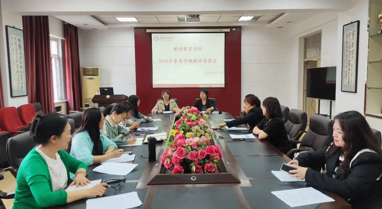 (文/王晓敏)根据教务处“关于开展2024年春季学期期中教学检查工作的通知”要求,及“教师教育学院2024年春季学期期中教学检查工作方案”的安排,为进一步了解学院教师的教学情况,听取学院教师对教学工作的意见和建议。2024年5月8日下午,在6211会议室召开了“2024年春季学期教师座谈会”,教师教育学院院长周淑红、副院长刘亨荣、系主任、教研室主任、教授等参加会议,会议由刘亨荣主持。