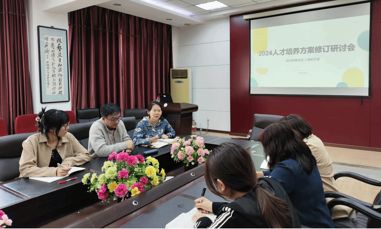 各教研室研讨会中,首先,教研室主任就2020版人才培养方案中各教研室开设课程存在的问题进行了陈述和总结;其次,各课程负责教师对标师范专业认证标准、小学教师专业标准、教师教育课程标准等文件政策,对负责课程开设必要性、是否增减学时、是否与其他课程融合重构等问题进行了汇报;最后,各教研室研讨形成了2024版人才培养排放各教研室课程体系修订方案。