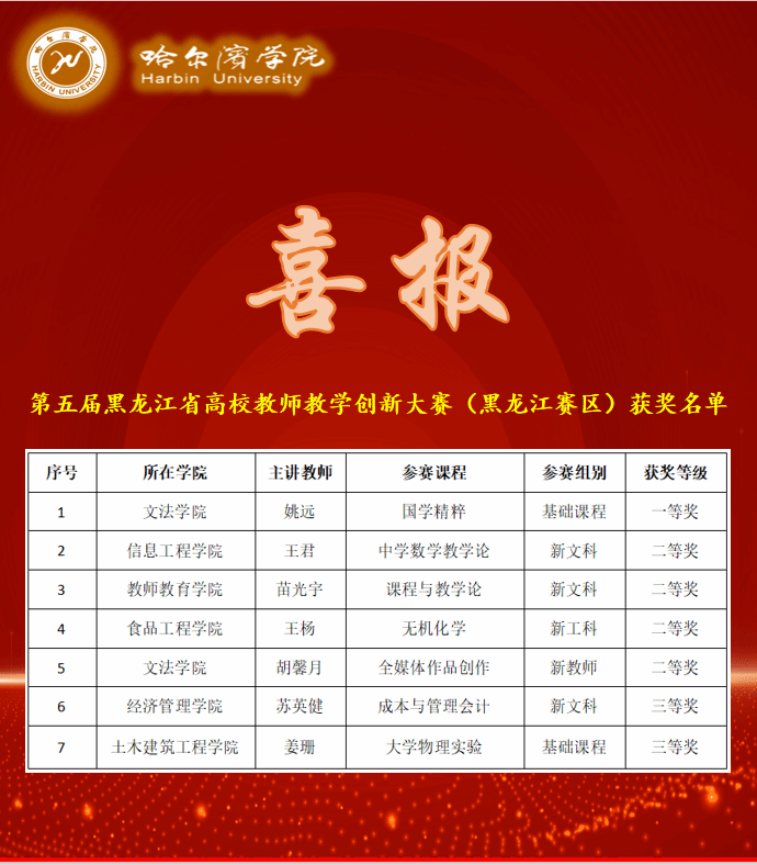 (文/刘源雪)在第五届全国高校教师教学创新大赛(黑龙江赛区)中,哈尔滨学院教师教育学院苗光宇老师凭借卓越的教学创新能力与扎实的专业功底,荣获二等奖。这一成绩不仅展现了苗光宇老师个人在教学领域的深厚积淀,更彰显了学院在推动教学创新发展中的显著成效。