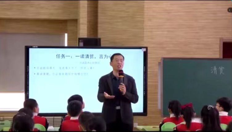 杨老师在讲座中对课堂教学常见的现象进行了剖析,归纳出存在的10种问题,正是这些问题的存在使得语文教学“模式化”“程式化”严重,“形式化”“浅表化”问题突出,严重影响了语文教学的质量。为此,语文教学必须寻找突围路径,重构语文课堂。讲座中,杨老师列举了大量常见的教学案例,引发了同学们对这些问题的关注。接下来,杨老师跟同学们一起观摩了他上的一节语文研讨课——小学五年级的一篇略读课文《清贫》。