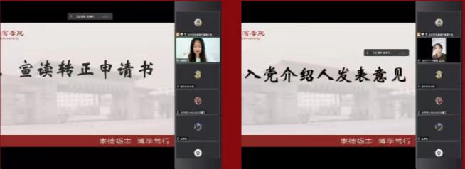 按照预备党员转正程序,本批转正的13名预备党员分别宣读《转正申请书》,其入党介绍人发表预备期考察培养意见,其他与会同学也发表了个人意见,经与会正式党员无记名投票分别进行表决,同意霍雨朦、金安琪、李一鸣、刘雪薇、李智超等13名同学按期转为中国共产党正式党员。张满老师对以上13名同学表达了祝贺,并鼓励他们从此应以更高标准严格要求自己,不辜负党组织的信任与培养。