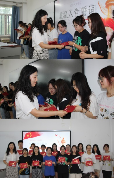 党支部书记李一宁老师为本季度入党党员颁发“政治生日”贺卡并送上祝福,她强调每名党员都应铭记自己的“政治生日”,铭记自己成为光荣的中国共产党员的日子,全体党员应牢记中国共产党人为中国人民谋幸福,为中华民族谋复兴的初心使命。