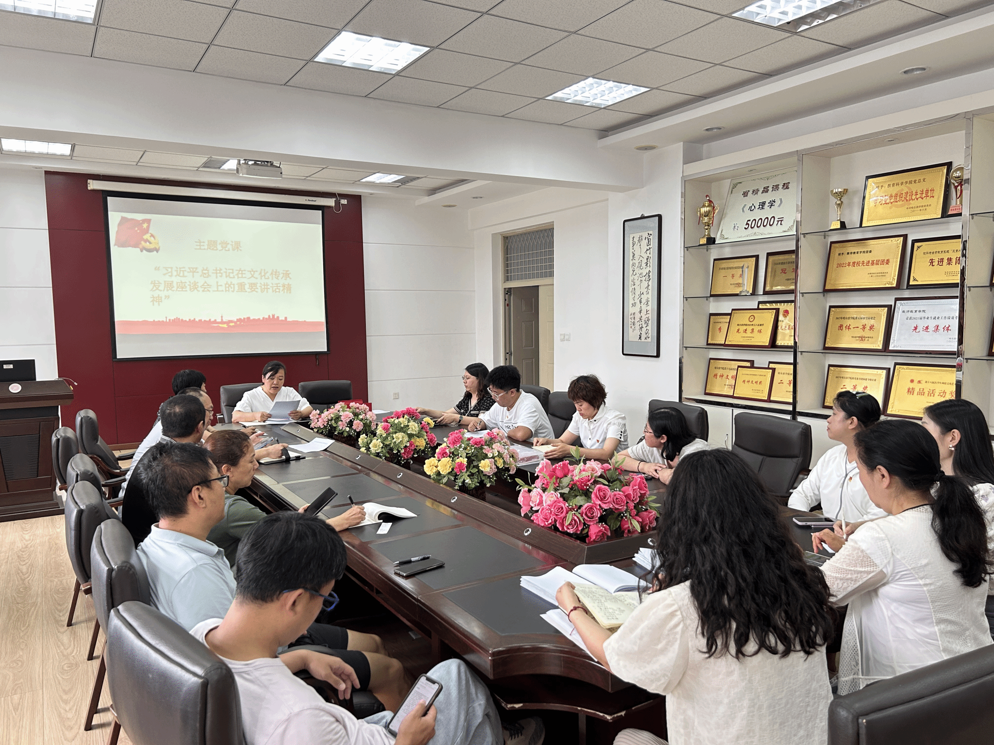 活动中,教师教育学院党员教师学习了习近平总书记在文化传承发展座谈会上的重要讲话精神并展开讨论,纷纷表示要坚定文化自信,同时结合自身工作努力培养合格且优秀的师范专业人才,为建设文化强国贡献力量。