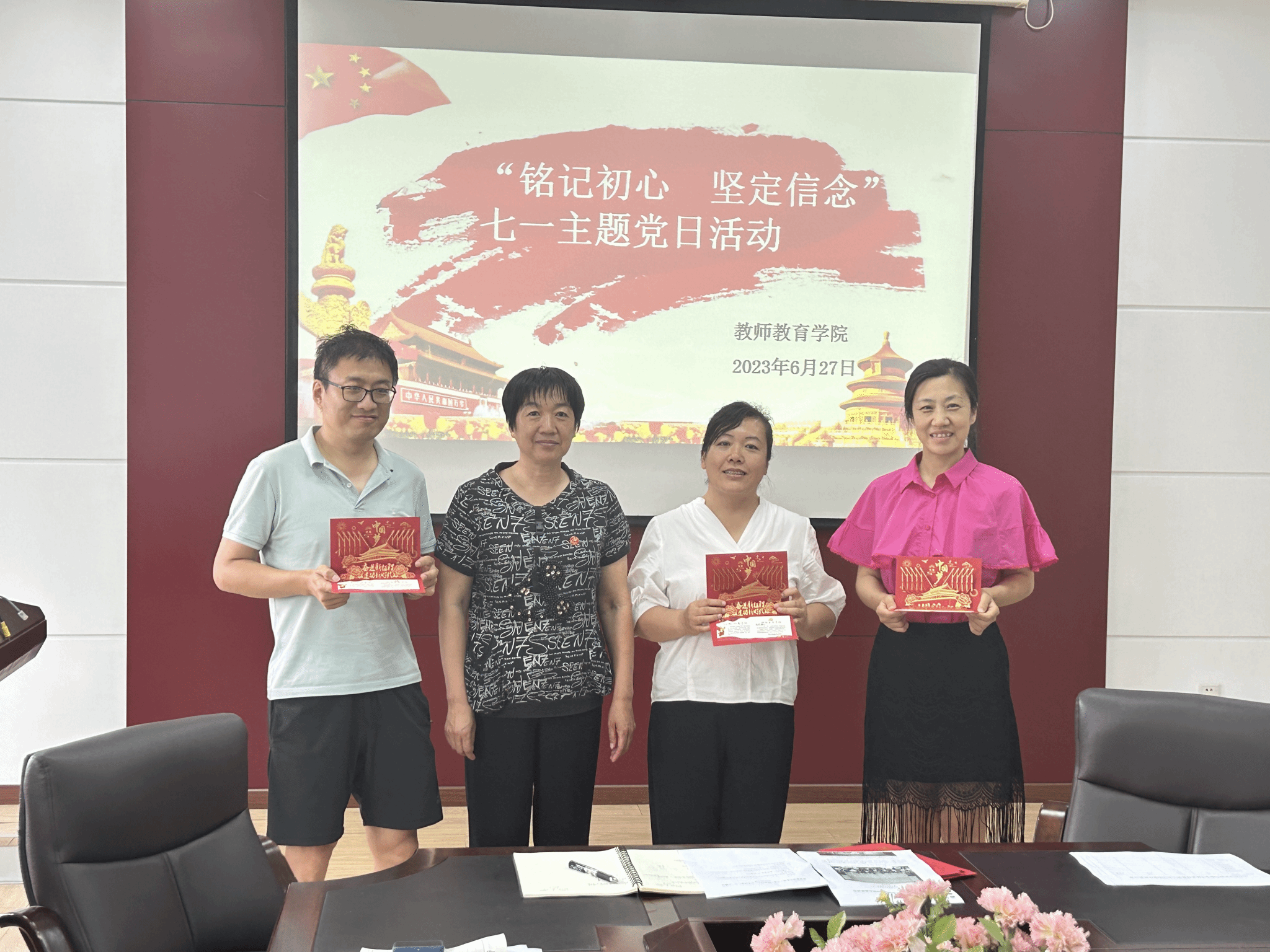 按照上级要求,为持续深入、系统学习、及时跟进学习习近平总书记重要讲话和重要指示批示精神, 2023年6月27日,教师教育学院教工支部在6211开展“铭记初心,坚定信念”七一主题党日活动。