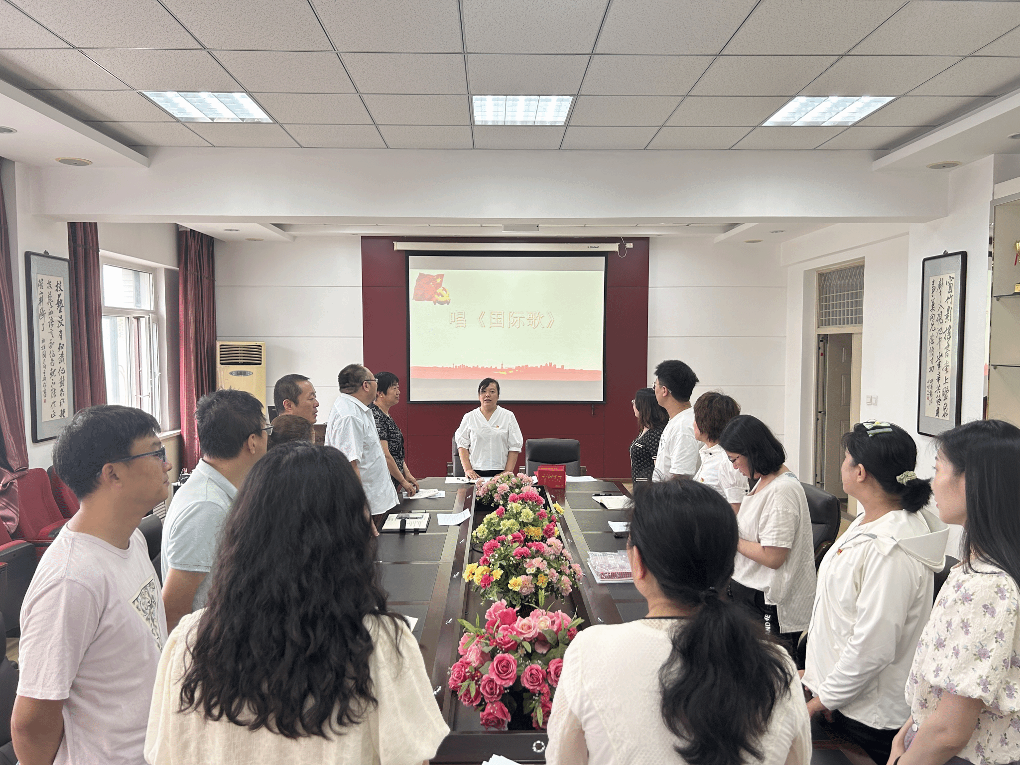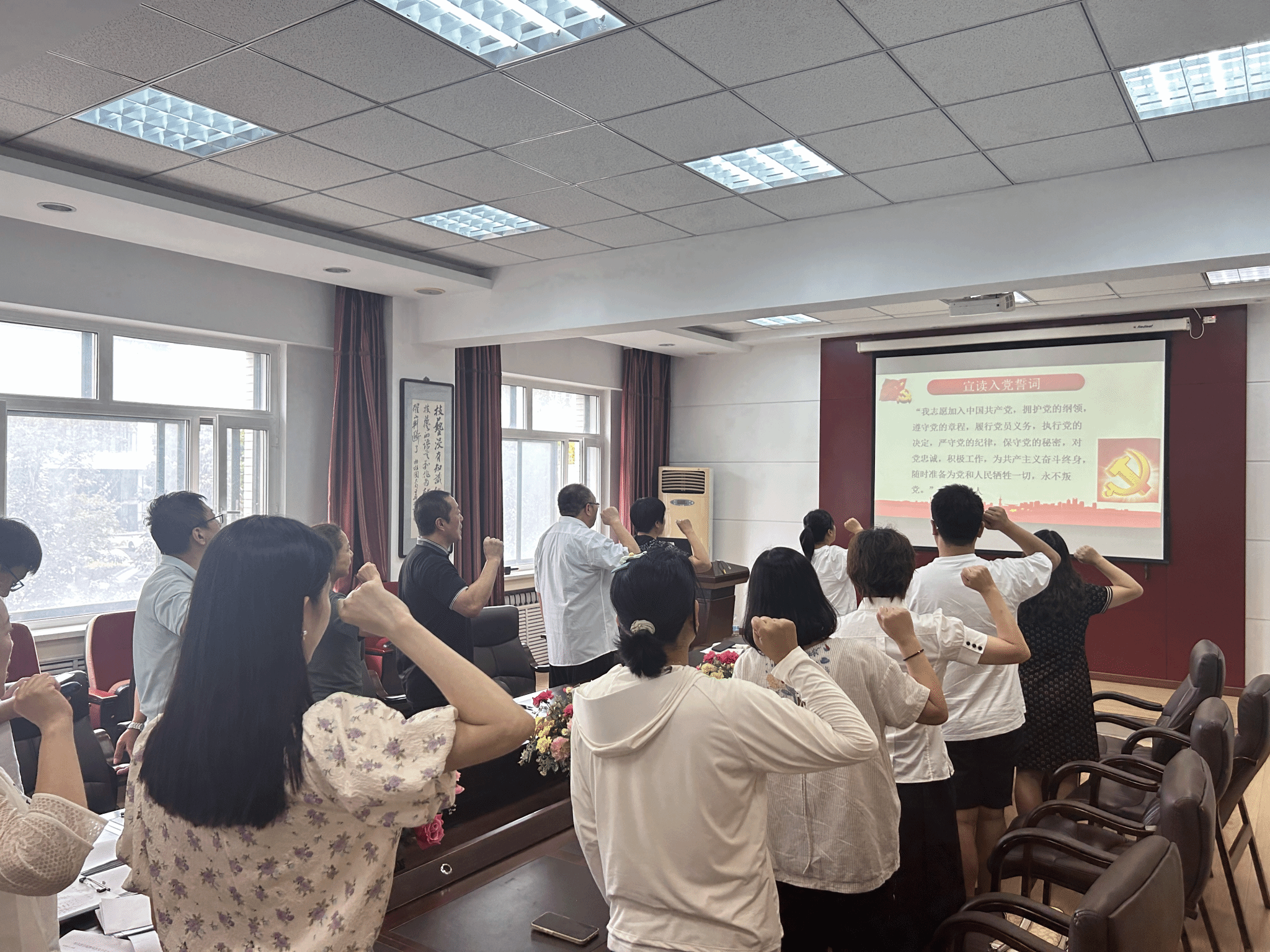 接下来,全体党员教师唱《国际歌》,重温《入党誓词》。在雄壮的国际歌声中,在铿锵有力的入党誓词声中,每个党员教师都重新经历了一次深刻的精神洗礼和党性锤炼。