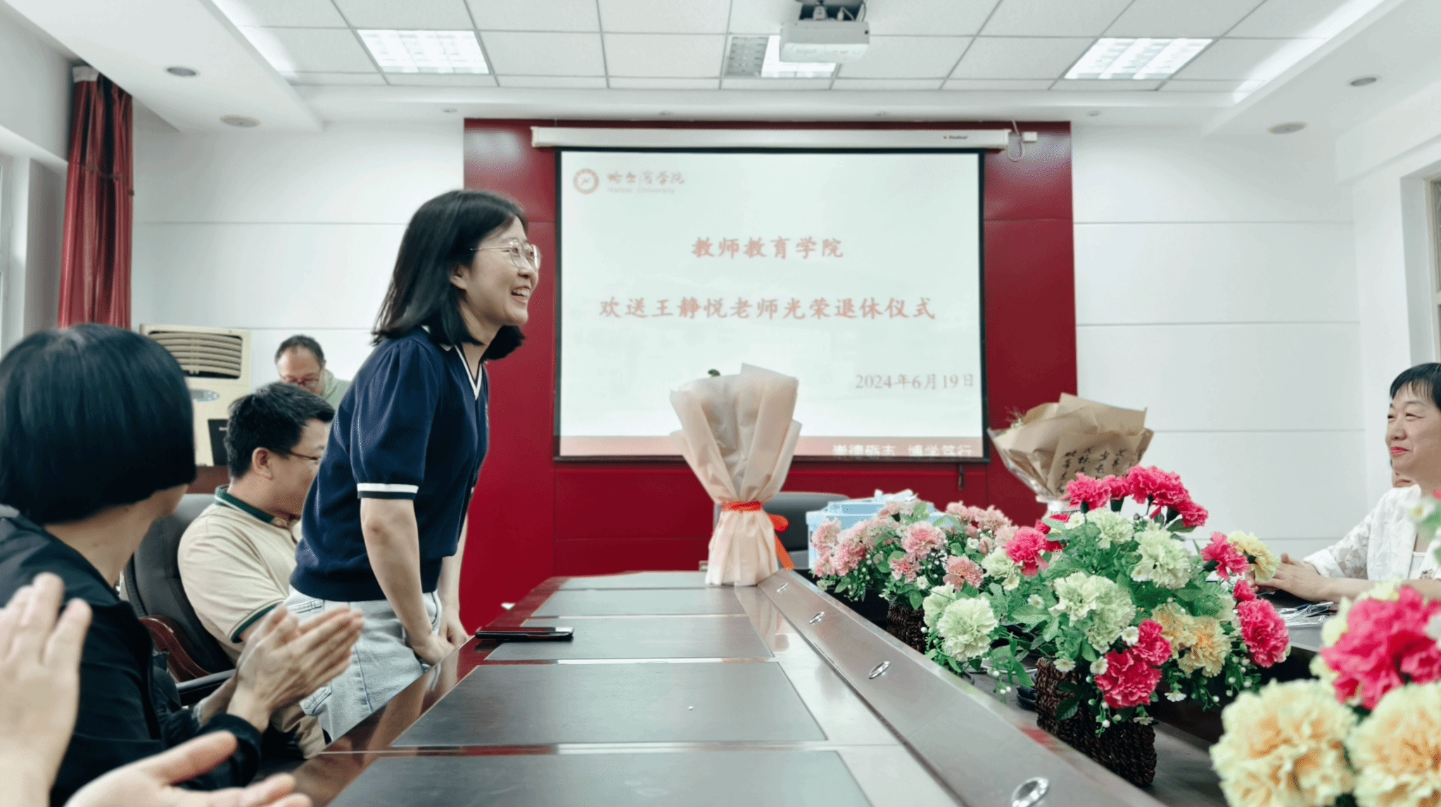 (文/孙华)6月19日下午,伴随着不舍与祝福,教师教育学院院工会为退休教职工王静悦老师举办荣退仪式。学院党委书记杨晓静,院长、党委副书记周淑红,副院长刘亨荣,工会主席孙华及近四十位教职工齐聚一堂,在温馨的氛围中欢送王静悦老师。仪式由工会主席孙华主持。