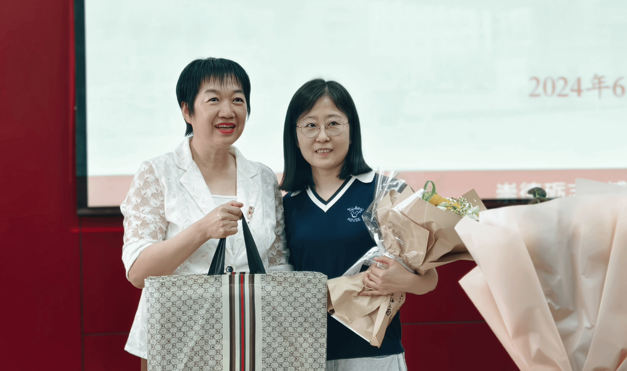 工会主席孙华代表学院全体工会会员向王静悦老师献上了最崇高的敬意与最美好的祝福。杨晓静书记、周淑红院长为王静悦老师赠送荣休纪念品及鲜花。