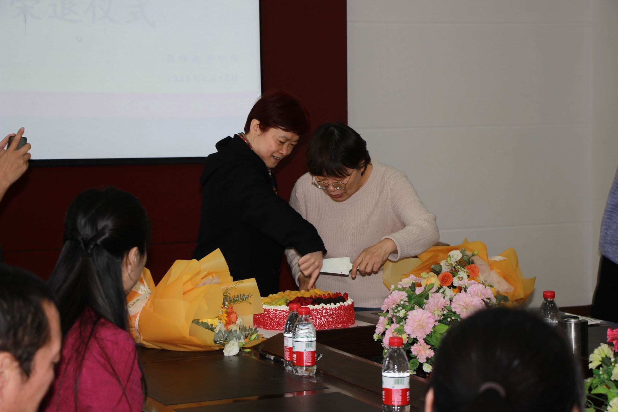 又是一载流光溢彩,又是一季桃李芬芳。在会议室情谊浓浓的氛围中,由孙华代表工会发言,向两位教师一生的辛勤奉献表示真诚的感谢。随后周淑红代表学院向两位教师为教师教育学院的建设与发展所做的贡献表示感谢并为两位教师的退休生活送上衷心的祝福。