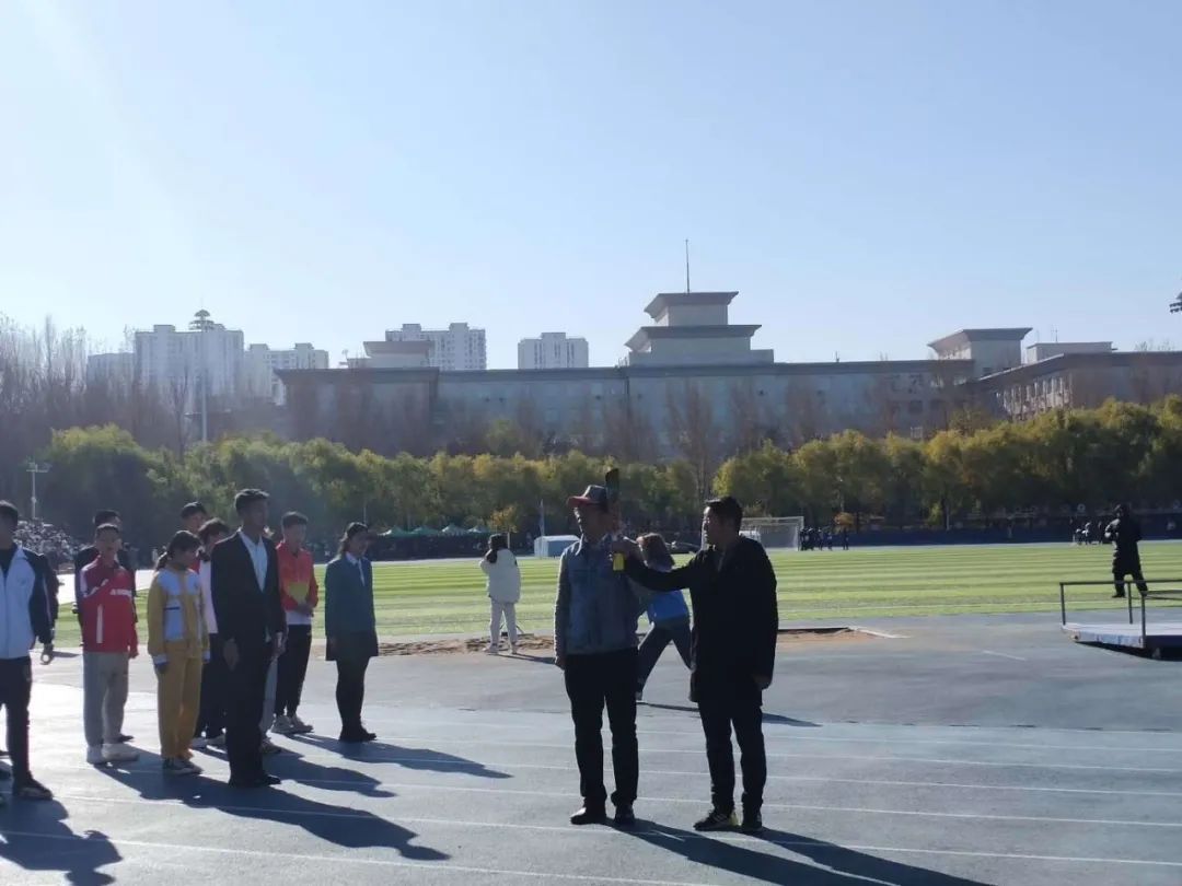 教师教育学院的李铁岩书记和刘振清院长作为火炬手传递象征着希望的火炬,腾腾的火苗预示着运动会的圆满举行。