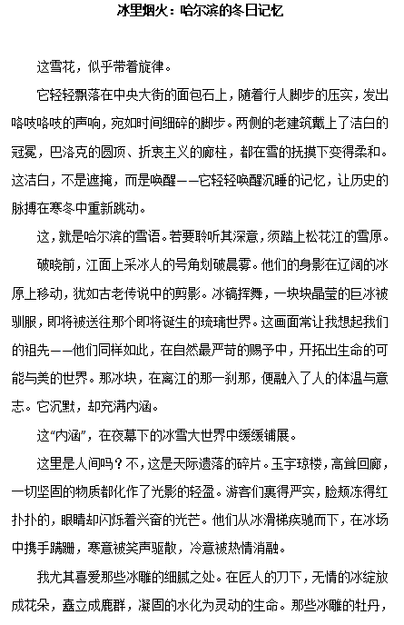 本次征文比赛自启动以来,得到全校各学院学生的积极响应,各学院学生踊跃投稿,作品围绕哈尔滨冰雪文化的历史传承、当代价值、城市记忆等多元主题展开,兼具思想深度与情感温度。经过学院领导、专业教师组成的评审团严格初审、评审及综合评定,最终评选出一等奖 1 名、二等奖2名、三等奖 3 名及优秀奖14名,他们的获奖等次及作品为: