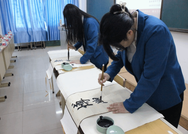 然后,我院学生为大家带来专业技能展示——“崇德励志,博学笃行”主题书法展示和《维族姑娘》舞蹈展示。她们舞笔挥墨,翩姿如蝶,展现了我院学生扎实的专业基本功与积极向上的精神面貌。