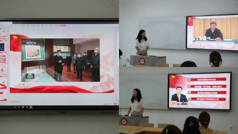 随后全体党员通过观看视频,深入学习习近平总书记参加文化传承与发展座谈会讲话精神。习近平总书记在座谈中强调“在新的起点上继续推动文化繁荣、建设文化强国、建设中华民族现代文明,是我们在新时代新的文化使命”。从党和国家事业发展全局战略高度,发出新时代中国共产党和中国人民的历史宣告:“要坚定文化自信、担当使命、奋发有为,共同努力创造属于我们这个时代的新文化,建设中华民族现代文明。”
