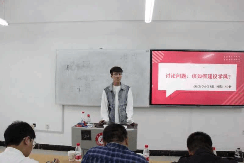 首先,班长马雨馨同学围绕良好班风应具备的条件、学风包含内容、班级学风所出现的问题三个方面展开学风主题班会报告。然后同学们以“如何建设学风”为主题进行分组研讨,通过讨论,学生们深刻体悟到树立优良学风对学习的重要意义。班会还通过学生干部发言明确了学生干部在学风建设中的引领作用,强调学生干部要在学习中争做思想上的“引领者”、行动上的“先行者”。会上还向与会同学发放了学风建设主题调查问卷,以检测学生们在本次学风建设班会的收获。
