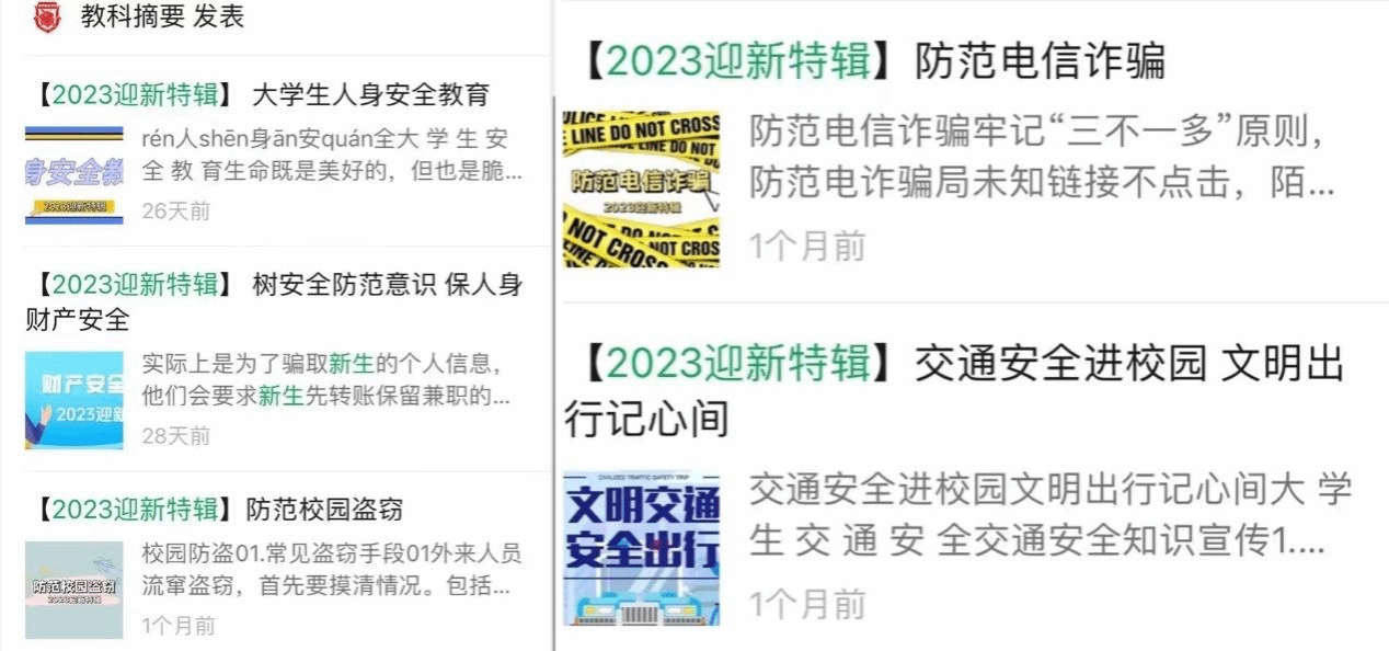 为帮助学生更好理解资助政策和培养安全意识,教师教育学院于9月4日至10月15日分别以公众号的形式开展学生自主政策讲解暨网络思政教育,本次活动就大学生人身安全教育、人身财产安全、校园盗窃、电信诈骗、交通安全文明出行等不同主题活动,帮助学生提升网络安全意识,做好思想工作,同时提高了其文明出行意识,争做文明大学生。