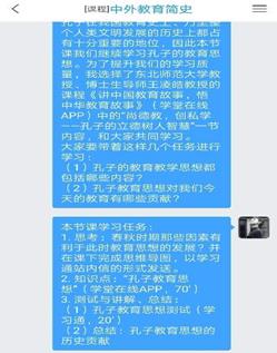 《中外教育简史》选择“超星学习通”APP作为课程教学活动开展平台,依托自建慕课与直播课,精心设计课程与教学,服务于准教师的学习。以课上为主要时段,让学生在课上的时间高效学习,做到“时教有正业”;同时突破学生课前、课中、课后的时间壁垒,不同时间段分配不同的任务,将学习融入到学生的生活之中,做到“退息有居学”。课程目标明确、个性鲜明、内容充实、形式多样、富有挑战性,学生到课率100%。