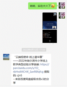 实习生们还参与到哈尔滨市网络教学平台,和一线老师们一起进行云上研讨,火爆的程度挤满了几个腾讯会议室,学生们的热情也感染了一线教师,哈尔滨市教育研究院给实习生开放了百度网盘,让学生们下载资源进行研讨。