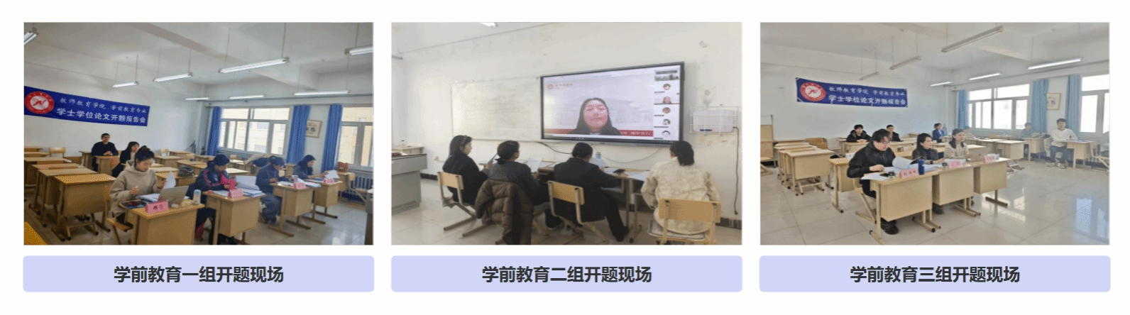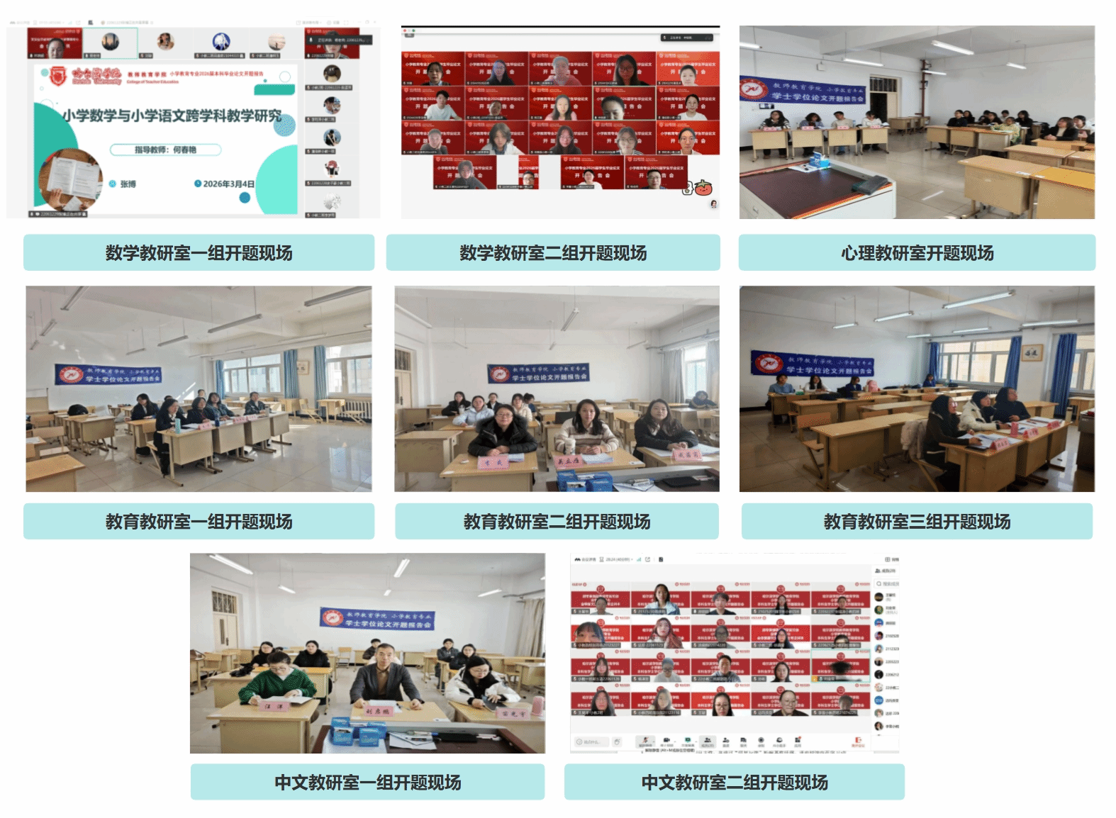 本次开题按专业与选题方向分组实施,小学教育专业学生共161人,设8个开题小组;学前教育专业学生共107人,设3个开题小组。各小组均由3名专业教师组成评审组,采用线上线下相结合的方式同步进行。学生依次围绕选题研究意义、国内外研究现状、论文核心框架、研究思路与方法等内容,全面汇报前期准备情况。各开题组指导教师严格审议每一份开题报告,严把选题合理性与学术规范性关口,并结合专业方向给出精准研究指导与写作优化建议。
