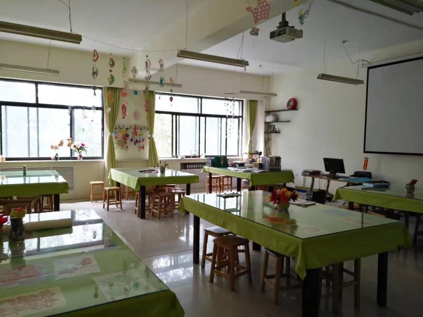 手工教室位于主校区六号教学楼三楼,占地面积约60平方米,分为创作区、展示区和材料储备区三个功能区域。创作区配备有宽敞的桌椅、充足的自然采光,为学生提供舒适、安全的创作环境。展示区用于展示学生的作品,激发学生的创作热情和成就感。材料储备区则储备了丰富的手工材料,包括彩纸、黏土、布料、绳线、颜料等,满足不同手工制作项目的需求。此外,教室还配备了教学设备,如投影仪、多媒体,方便教师进行示范教学和学生进行实践操作。同时,教室还设有专门的储物柜和清洁工具,确保教学环境的整洁与有序。