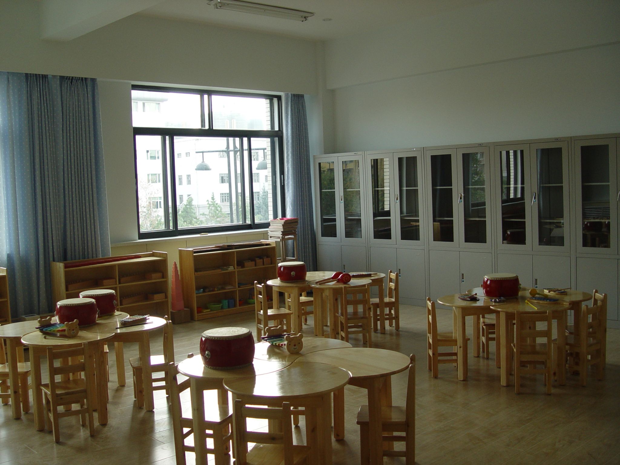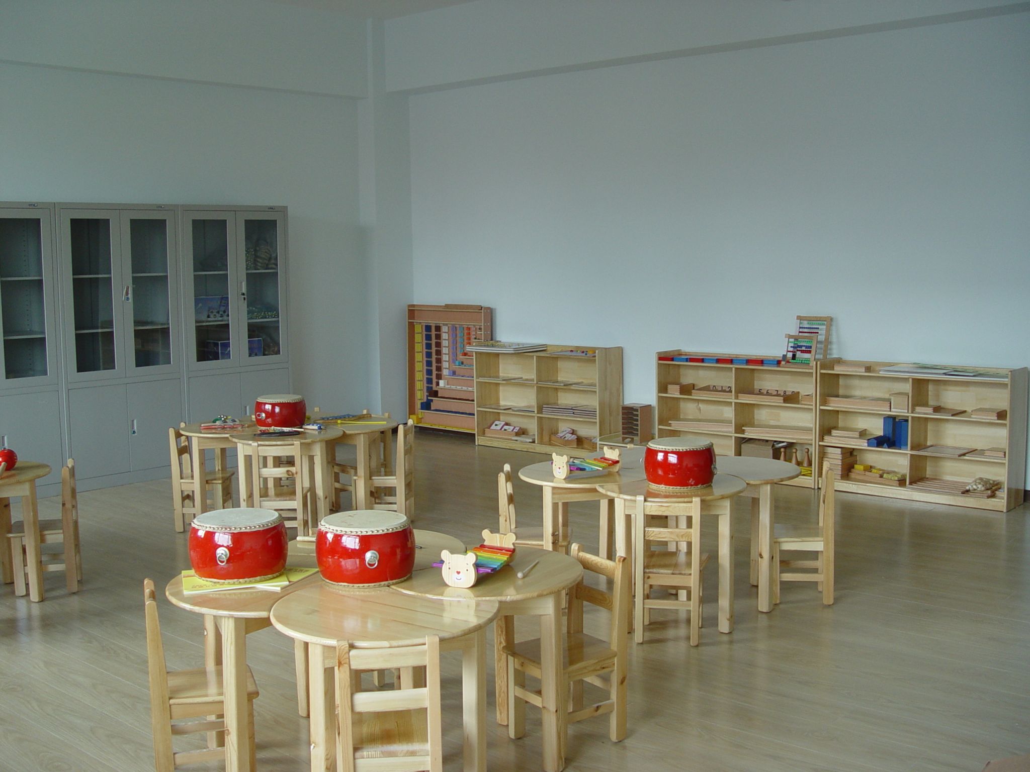 奥尔夫音乐教室成立于2013年8月,总面积约58平方米, 主要承担我院学前教育专业学生《奥尔夫音乐教学》课程的实训任务。采购国内最为先进的奥尔夫音乐教具,涵盖奥尔夫音乐教学法中多个方面的幼儿教育活动。另配有8人组的桌椅4套。可供30人以上的学生进行相关的实践活动。