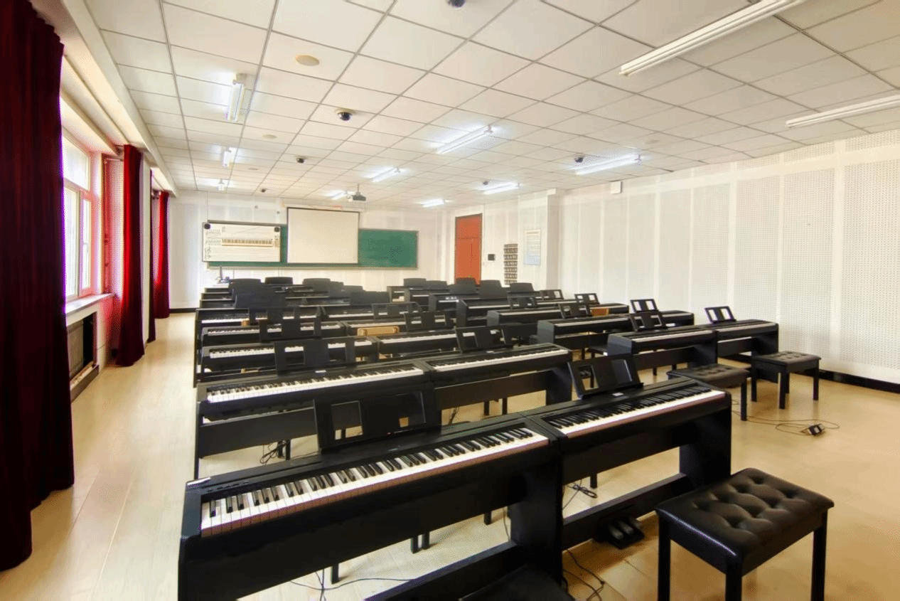 教室共配置了31台电钢琴,其中30台学生用琴,1台教师专用琴,便于教学示范与指导。电钢琴包含卡西欧与雅马哈两大知名品牌,其中卡西欧16台、雅马哈15台。