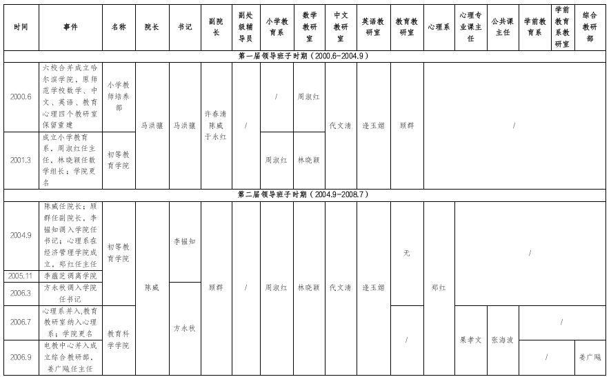 哈尔滨师范学校并入哈尔滨学院后组织机构变迁时间轴(2000.6——2025.6)