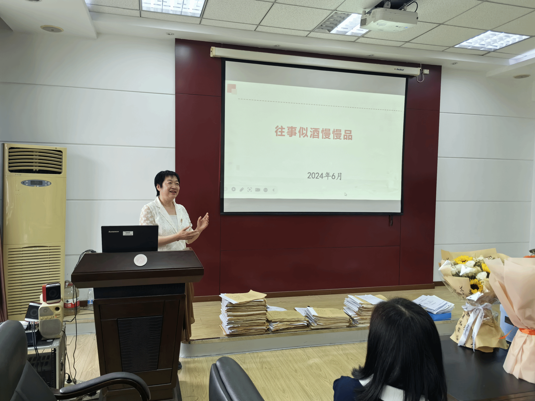 王静悦老师怀着激动的心情与参会老师分享了自己退休之际的心情与感悟。她首先感谢学院领导和师生对退休教职工的关怀,同时也对工会组织此次富有意义的活动表示感谢,并表示将继续保持平和的心态与积极的作风,希望未来有更多机会与学院的领导和同事们相聚。
