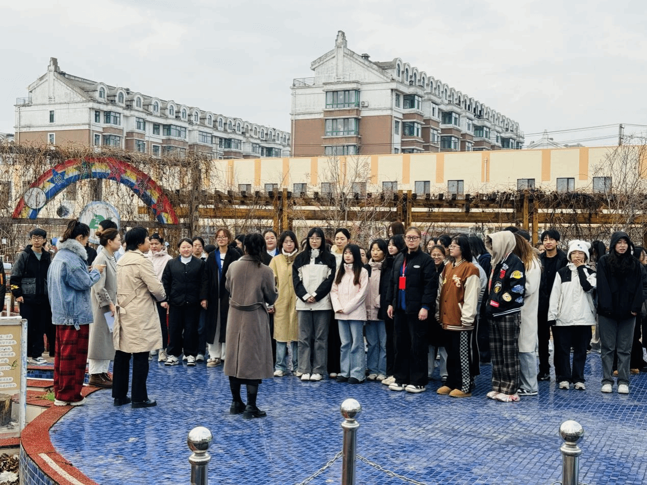 随后,在于主任的带领下,同学们开启了户外环境参观之旅。阿城二幼有玩沙区、玩水区、小舞台、攀爬架等丰富的户外活动资源,可以给予幼儿充分的户外游戏场地和时间。在于主任的细致讲解下,同学们也对户外游戏有了更加充分的认识和了解。
