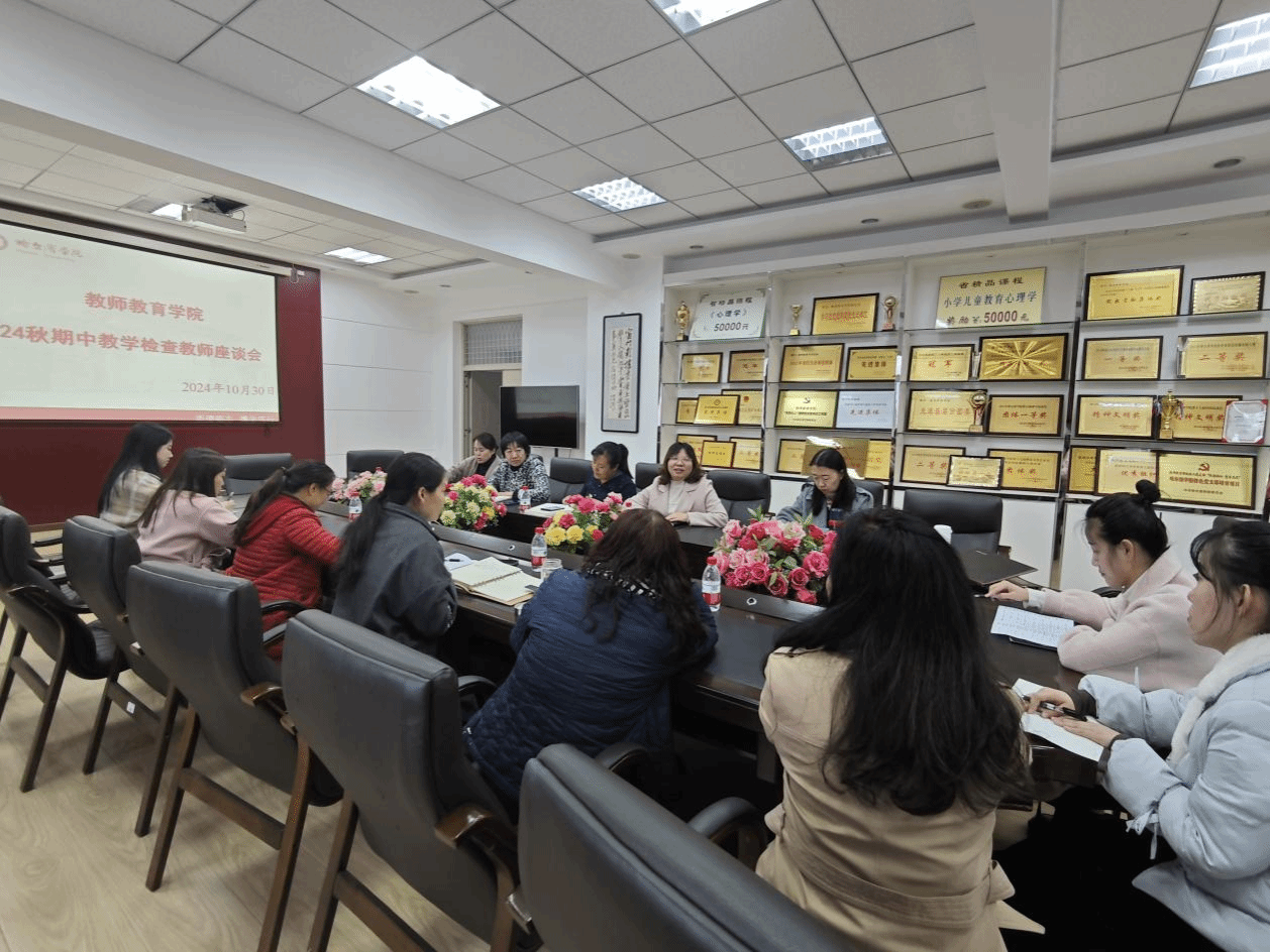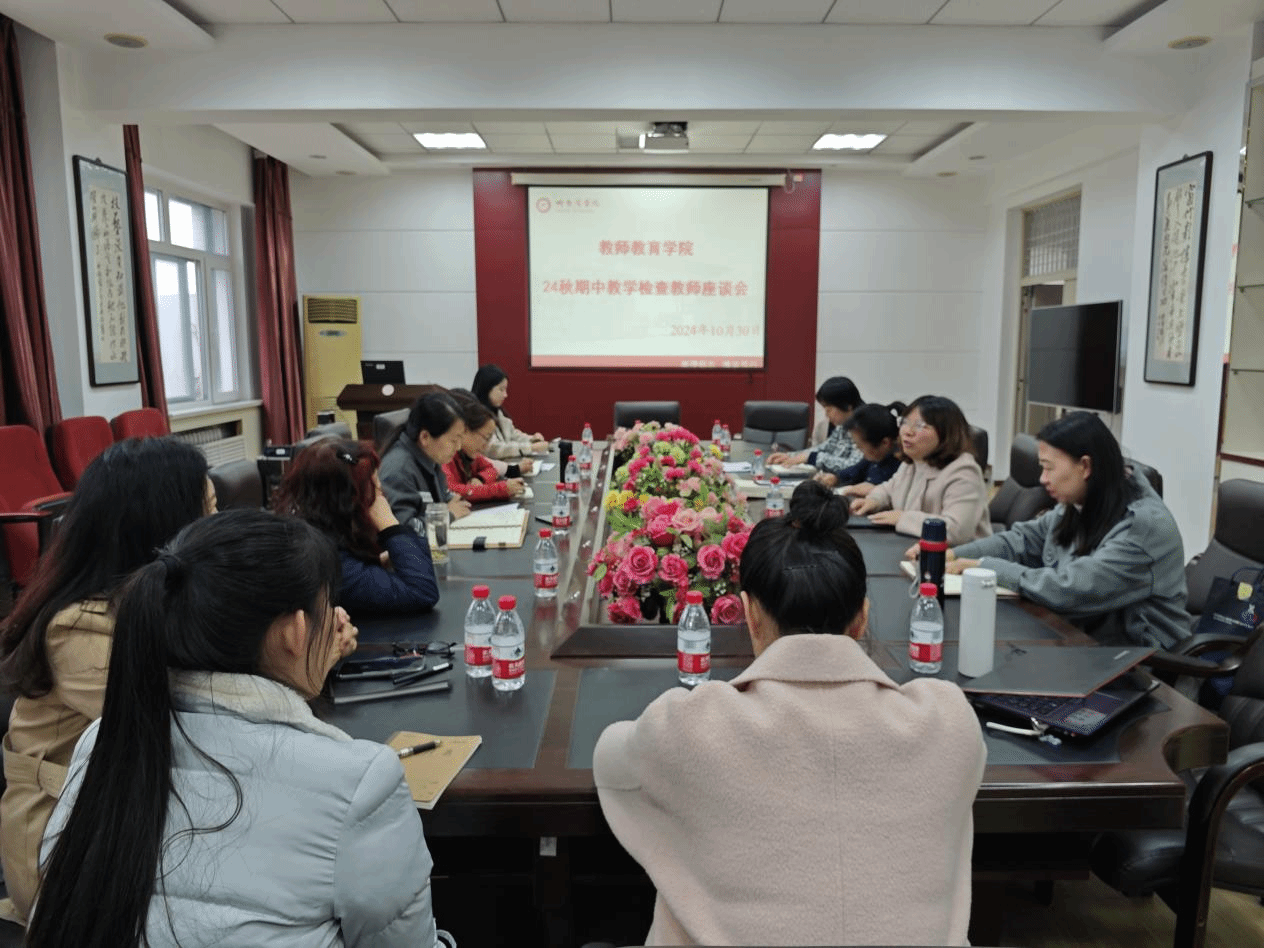 (文/王晓敏)根据教务处“关于开展2024年秋季学期期中教学检查工作的通知”的要求,以及“教师教育学院2024年秋季学期期中教学检查工作方案”的安排,为进一步了解学院教师的教学情况,听取学院教师对教学工作的意见和建议,2024年10月30日下午,在6211会议室召开了“2024年秋季学期教师座谈会”,教师教育学院院长周淑红、书记杨晓静、副院长刘亨荣、系主任、教研室主任、教学督导、教学秘书参加了会议,会议由刘亨荣主持。
