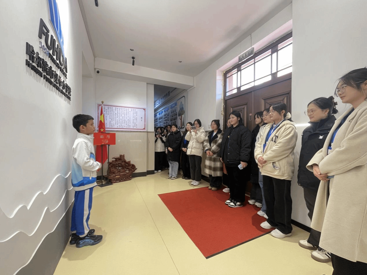 中午时分,同学们在校长的引导下参观了复华小学的校史馆。校史馆中陈列的丰富史料和珍贵照片,让实习生们对学校的历史有了更深入的了解,也让他们对教育事业的传承与发展有了更深的认识。参观过程中,红领巾讲解员们还分享了学校的发展历程和教育改革的实践经验,这些宝贵的第一手资料让实习生们受益匪浅。