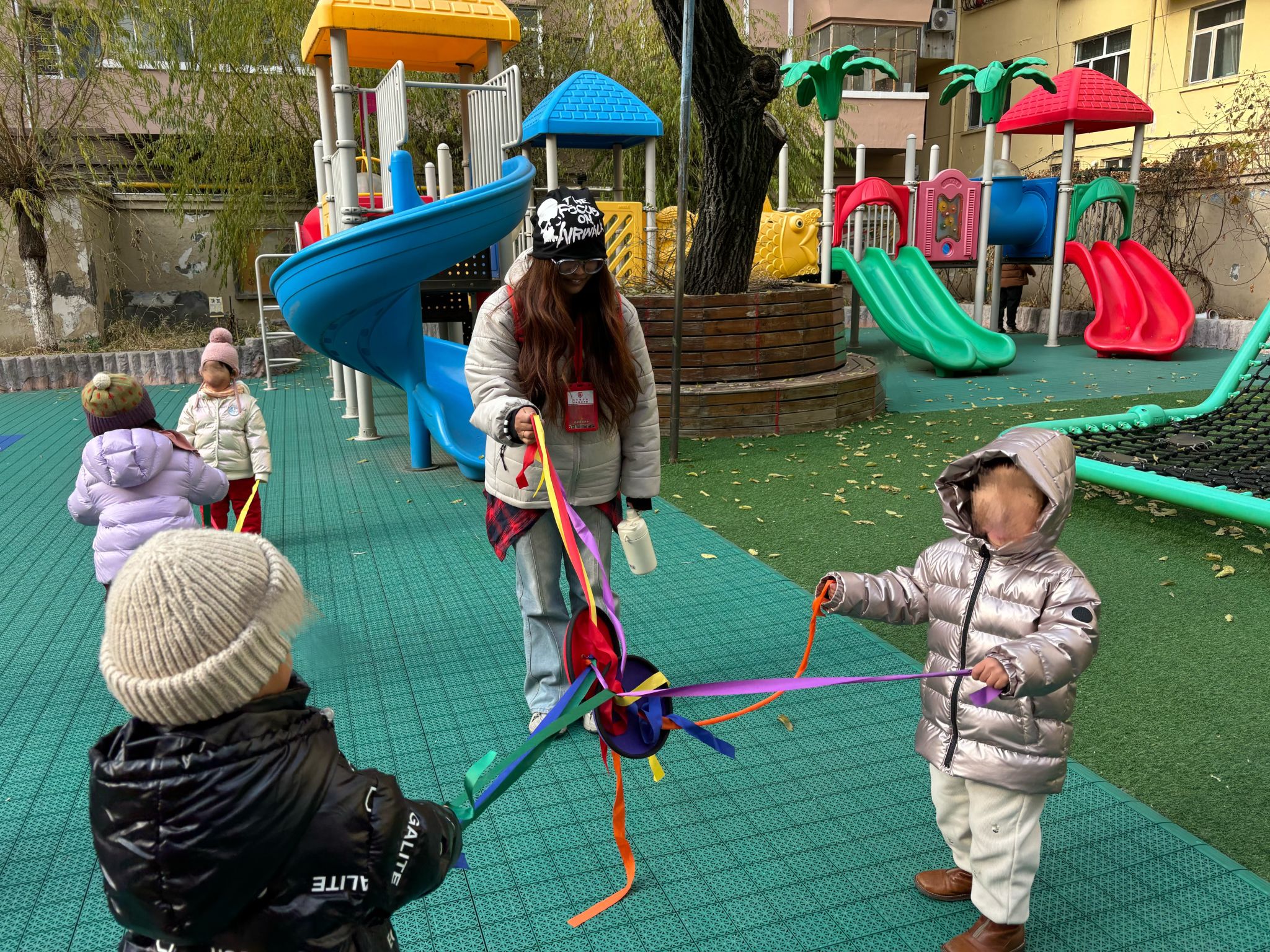 接下来,同学们和幼儿一起进行户外游戏,深入了解幼儿生活、游戏活动及学习活动的组织与实施,切身感受理论知识在教育过程中的实践与运用,进一步了解幼儿教师工作职责与重要。