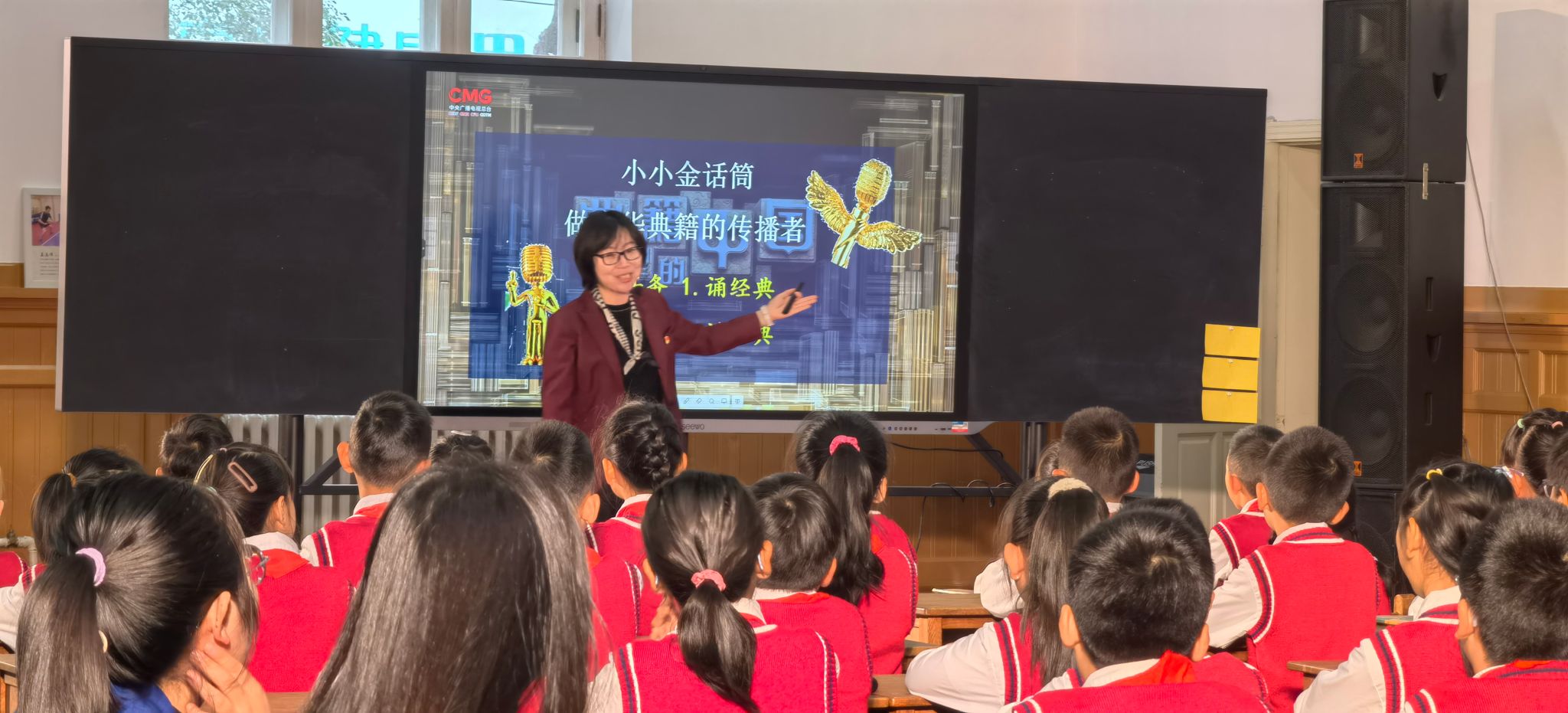 接下来,在王欢主任主持下,师范生们兴趣盎然地欣赏了四年三班同学饱含深情演绎的红色课本剧《英雄》和五年级部分同学表演的诗文诵读《大唐》,观摩了付裕老师生动活泼的精品课《精卫填海》、学习了盛茜老师数学团队分享的研课成果《解读核心素养表现 阅读理解教材本真》,并聆听了黄海容老师精心准备的介绍阅读方法的专题讲座《整本书阅读的思考与实践》。礼堂里的师范生不时用热烈的掌声表达对台上师生的认同,他们不停地拿出手机拍下一个个不想忘记的画面,高高举手积极与台上的老师互动,不同学科的教研活动让师范生开阔了眼界、增长了知识。