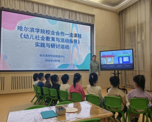 [文/王菠]4月2-9日,哈尔滨学院联合哈尔滨市托幼实验中心共同开展了学前教育专业《幼儿社会教育与活动指导》校企合作一流共建课程实践教学活动。本次活动以“校企协同、知行合一”为核心,通过“企业导师进课堂”“学生入园实操”“校企共研课程”等创新形式,深化产教融合,探索应用型幼教人才培养新模式。