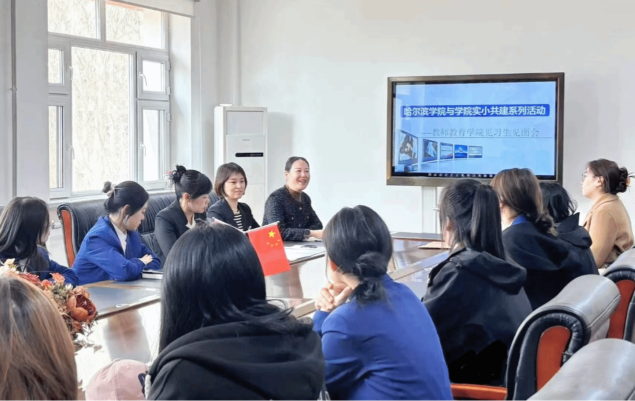 校园文化宣讲活动后,见习见面会在党员活动室隆重举行。哈尔滨学院实验小学赵文哲校长、郭宇主任、指导教师代表刘慧佳、哈尔滨学院见习带队教师赵航和全体见习教师出席。赵文哲校长对见习教师的到来表示热烈欢迎。她强调教育见习是从理论走向实践的重要途径,勉励见习教师既要恪守职业操守,更要在与学生的互动中唤醒对教育事业的深层认同。赵航老师感谢学校开放优质教育资源支持教育见习活动,并介绍了本次教育见习的目标及任务。郭宇主任详细介绍了见习计划和常规要求,为见习生勾勒出清晰的工作蓝图。刘慧佳老师表示会系统传授教学经验,针对课堂管理等核心问题答疑解惑,积极助力见习教师成长。见习生代表张雨彤发表履职承诺,表示会用热情和智慧,点燃孩子们心中对知识的渴望,对美好未来的向往。