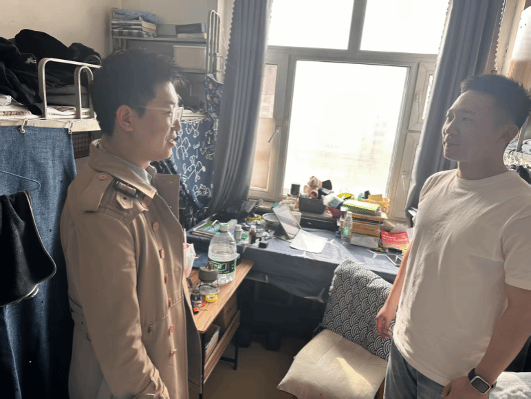 走访过程中,杨书记和几位老师与同学们展开深入交谈,围绕学习进度、生活近况及现实困难与压力进行详细了解。针对部分同学因学业任务繁重、未来职业规划尚未明晰而滋生的焦虑情绪,杨书记依托自身深厚阅历与实践经验,对其进行系统且专业的指导,明晰个人发展方向,勉励同学们科学规划学习计划、积极躬身实践。与此同时,五位辅导员老师也结合学生工作经验,向同学们分享心理调适的有效方法,并对宿舍环境卫生、用电安全等进行了细致排查,结合具体案例提醒同学们重视宿舍安全规范,共同构建安全稳定的住宿环境,夯实心理健康与安全保障的双重防护举措。