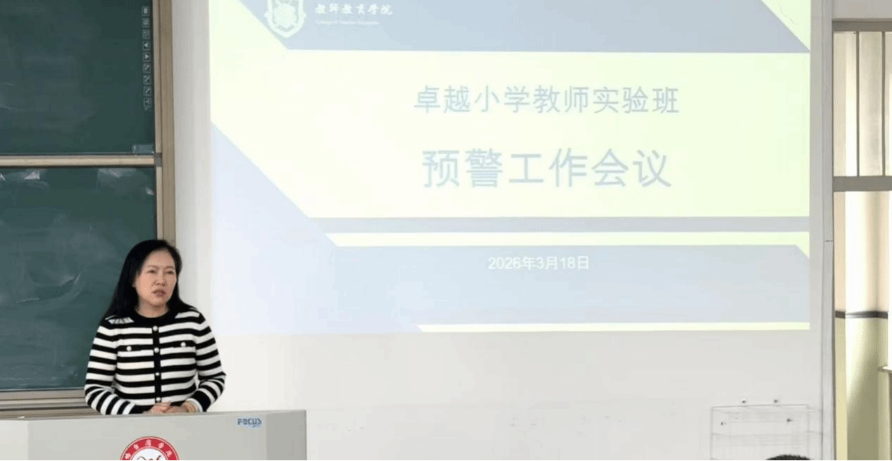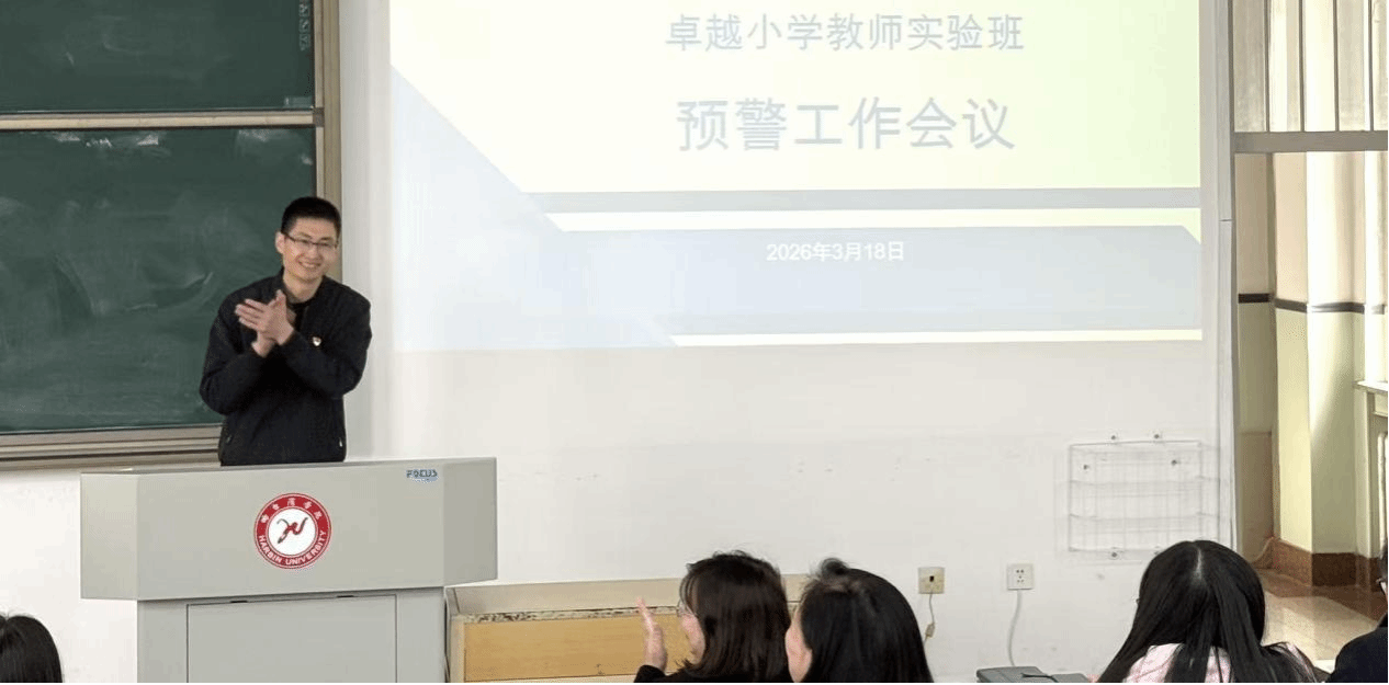 (文/纪善庆)2026年3月18日,教师教育学院于6401教室召开2026年春季学期卓越小学教师实验班预警工作会议。学院领导赵金坤、刘亨荣、嵩钰佳、吕爽、孙华,小学教育系主任孙学玉及2024、2025级卓越班班主任秦平、郑红及全体卓越班导师和学生参加会议。