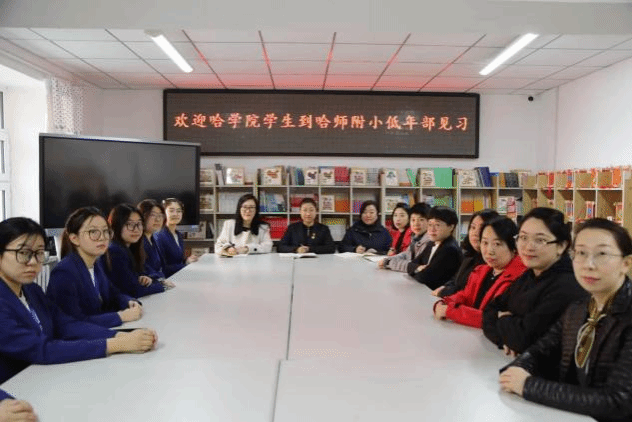 哈尔滨市师范附属小学各校区对我校见习生的到来表示了热烈的欢迎,对此次见习活动非常重视,在四个校区均召开了隆重的见面会。