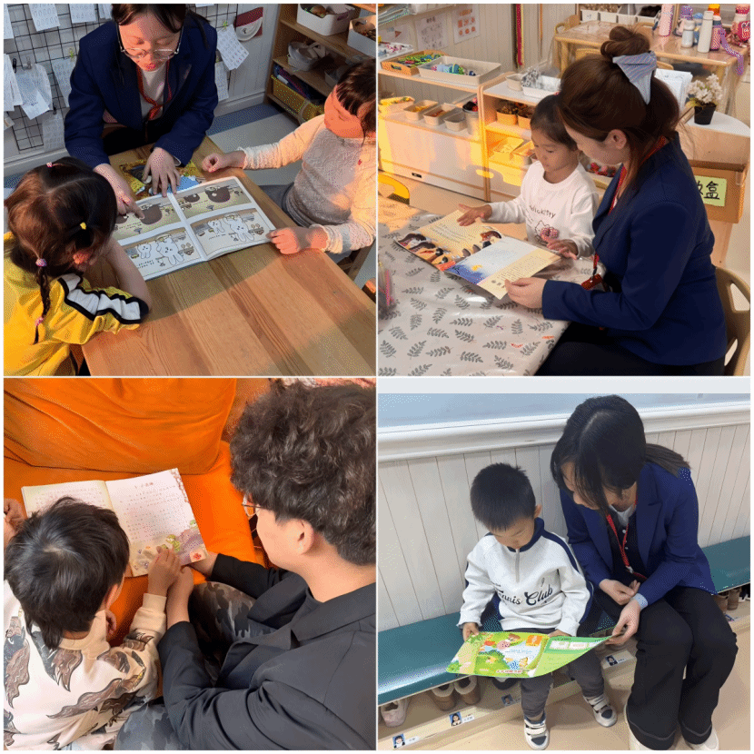 作为学校图书阅读月的重要延伸实践,此次活动紧扣“以读启智、以行践知”理念,见习学生充分结合专业所学,针对不同年龄段幼儿发展特点精准适配绘本资源。面对具象思维主导、偏爱趣味画面的小班幼儿,学子们俯身贴近、温柔引导,通过手把手教翻页、逐页解读图画、童趣肢体模仿等方式,让幼儿在触摸绘本、感知形象中萌发阅读兴趣;针对乐于互动、好奇心旺盛的中班幼儿,见习教师围坐身旁,以“左手扶书、右指细节”的规范姿态声情并茂讲述故事,穿插情节提问、角色互动等环节,营造出师生共读、畅聊分享的温馨氛围;聚焦具备一定理解能力、渴望探索内涵的大班幼儿,学子们则深化故事解读,通过细致讲解核心情节、设置深度问答、引导道理思考等形式,带领幼儿沉浸式感受绘本魅力,助力其提升理解与逻辑思维能力。