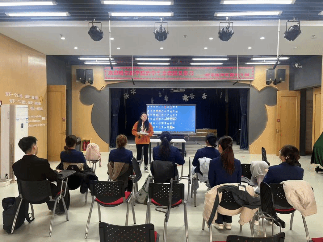 哈尔滨红霞幼儿园作为拥有深厚历史底蕴的公办园,秉持“做本真教育、育幸福儿童”的办园宗旨,以“读好书、习美德、立良行”为特色校园文化,为见习生们提供了优质的实践平台。入园伊始,王良玉园长为见习生们开展专项培训,详细介绍了园所历史沿革、特色课程体系及幼儿一日生活流程,叮嘱大家以空杯心态多观察、多倾听、多实践,在这座百年园所中感受教育的力量与童真的美好。
