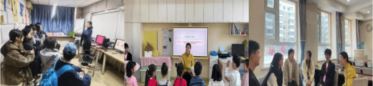 本次见习的核心特色是子项目“字曰东方——知否·玩索堂”系列作品的制作与课堂实践,践行了“数智焕活传统·感统筑基读书·对话哲学思想”的理念,形成了“设计构思——课堂实践——现场研讨”的完整闭环。见习启动前,带队教师卢红博带领全体同学开展专项部署,从作品主题选定到认字引导环节反复打磨。入园后,同学们将精心制作的哲学机关册、哲学戏本等带进课堂,通过触摸、游戏、对话等多元方式,引导幼儿在趣味中认字、在互动中思考。见习期间,卢红博老师多次入园,与园内指导教师共同观摩课堂实践,从内容设计、儿童反馈到哲学延伸等维度逐一点评,提出优化建议,并亲身与幼儿互动示范,推动团队在实战中不断提升。