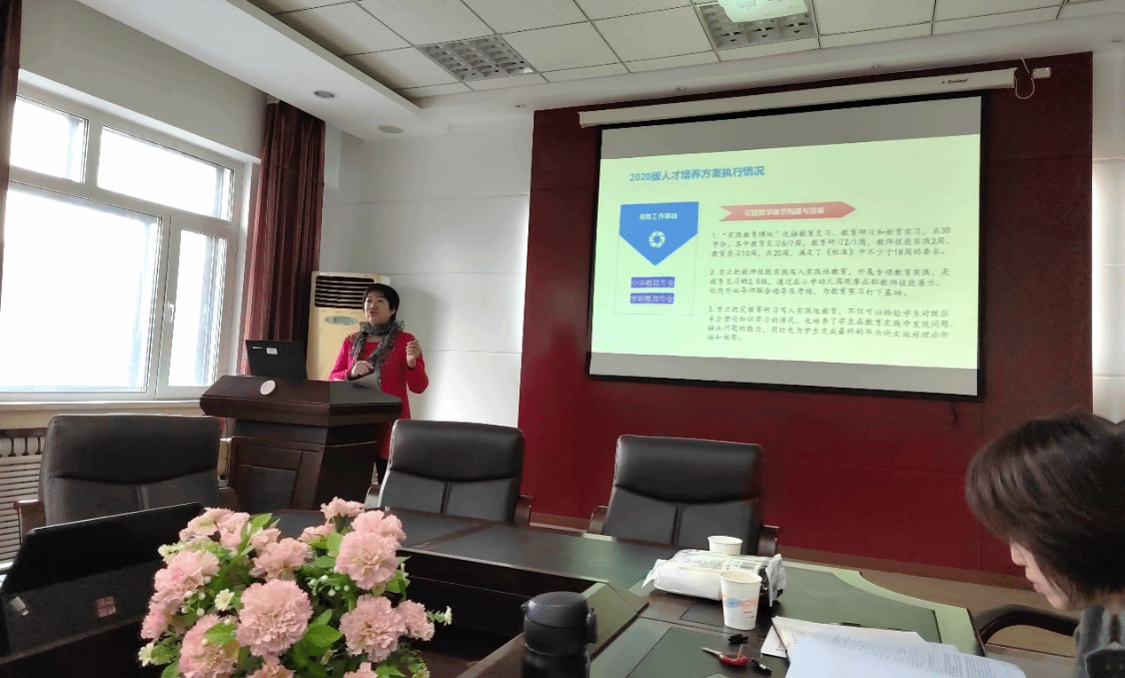 会议分两个阶段进行,第一阶段为我院小学教育和学前教育专业2020版人才培养方案执行情况汇报,周淑红从培养目标定位、贯彻执行与调整优化、毕业要求与达成、课程体系设置、人才培养模式与特色等方面分别介绍了我院小学教育和学前教育专业人才培养方案的执行总体情况,并结合专业人才培养的规格与要求、小学校长论坛反馈、基础教育专家调研反馈等,阐述各专业人才培养方案的课程设置、发展现状及存在的主要问题与对策。
