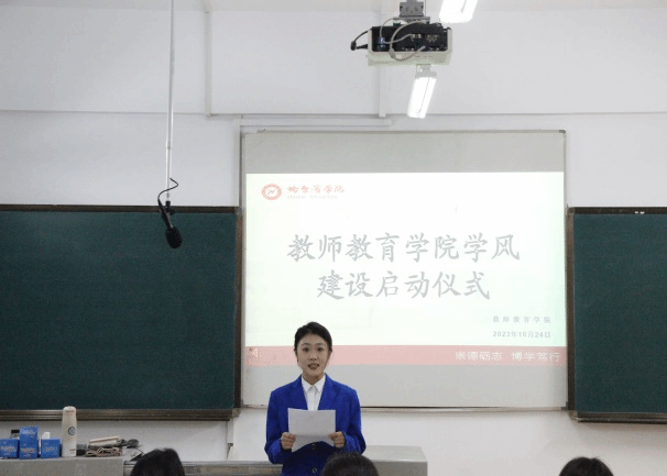 首先,教师教育学院党委书记杨晓静围绕专业理论学习、专业技能训练和团队协作三个方面进行了学院学风建设汇报,强调了我院学风建设始终秉持的“厚德博学,育人至上”的理念。