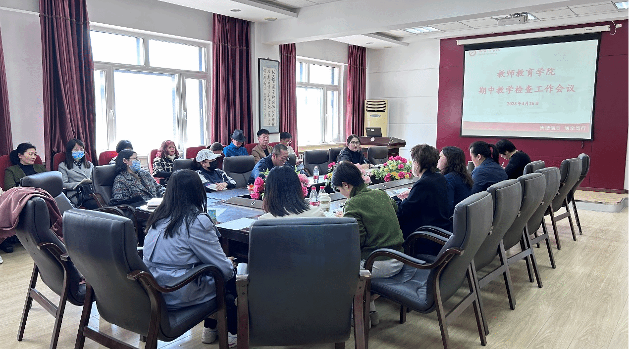 (文/王晓敏)为贯彻落实学校教务处《关于开展2023春季学期期中教学检查工作的通知》的相关要求,进一步强化常规教学管理和教学质量监控,检查理论课和实践课等教学环节的执行情况,“学生中心、产出导向、持续改进”OBE教育理念的贯彻情况,确保教学质量和学生学习成效。教师教育学院于4月26日下午召开2022-2023年度春季学期期中教学检查布置会议,会议由教师教育学院主管教育工作的副院长刘亨荣主持,教师教育学院院长周淑红、书记杨晓静和全体教师出席了本次会议。