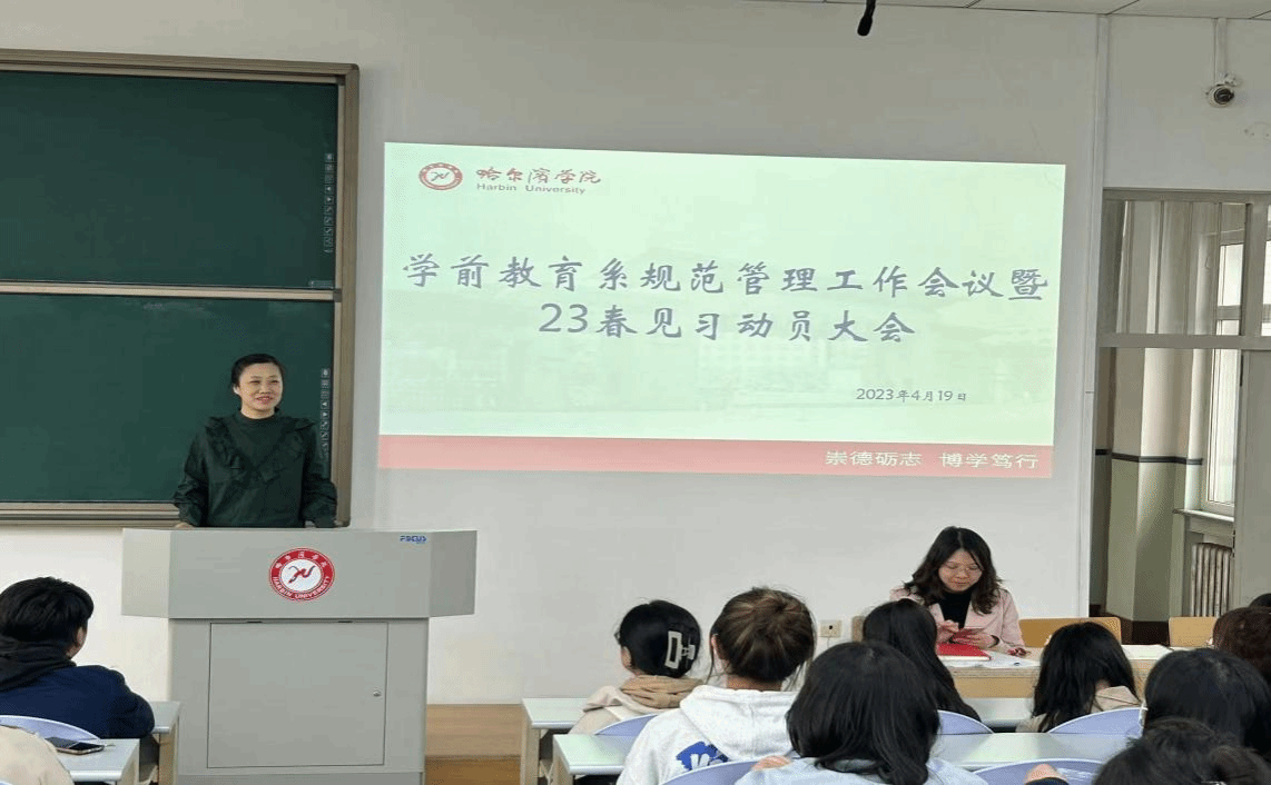 规范管理工作会议后,随即召开了学前教育系23春见习动员大会。本次见习是学前系自创办以来规模最大的一次见习,20级、21级、22级全体同学共228人同时参与见习,遍及哈市城区与乡镇、公办与民办各级各类16所幼儿园,会议在学院院长周淑红前期的总体部署和各种沟通协调下召开,会上卢主任就本次见习方案的制定,对各年级见习目的、内容、要求、分组等方面做了全面、详细的解读、安排与动员。