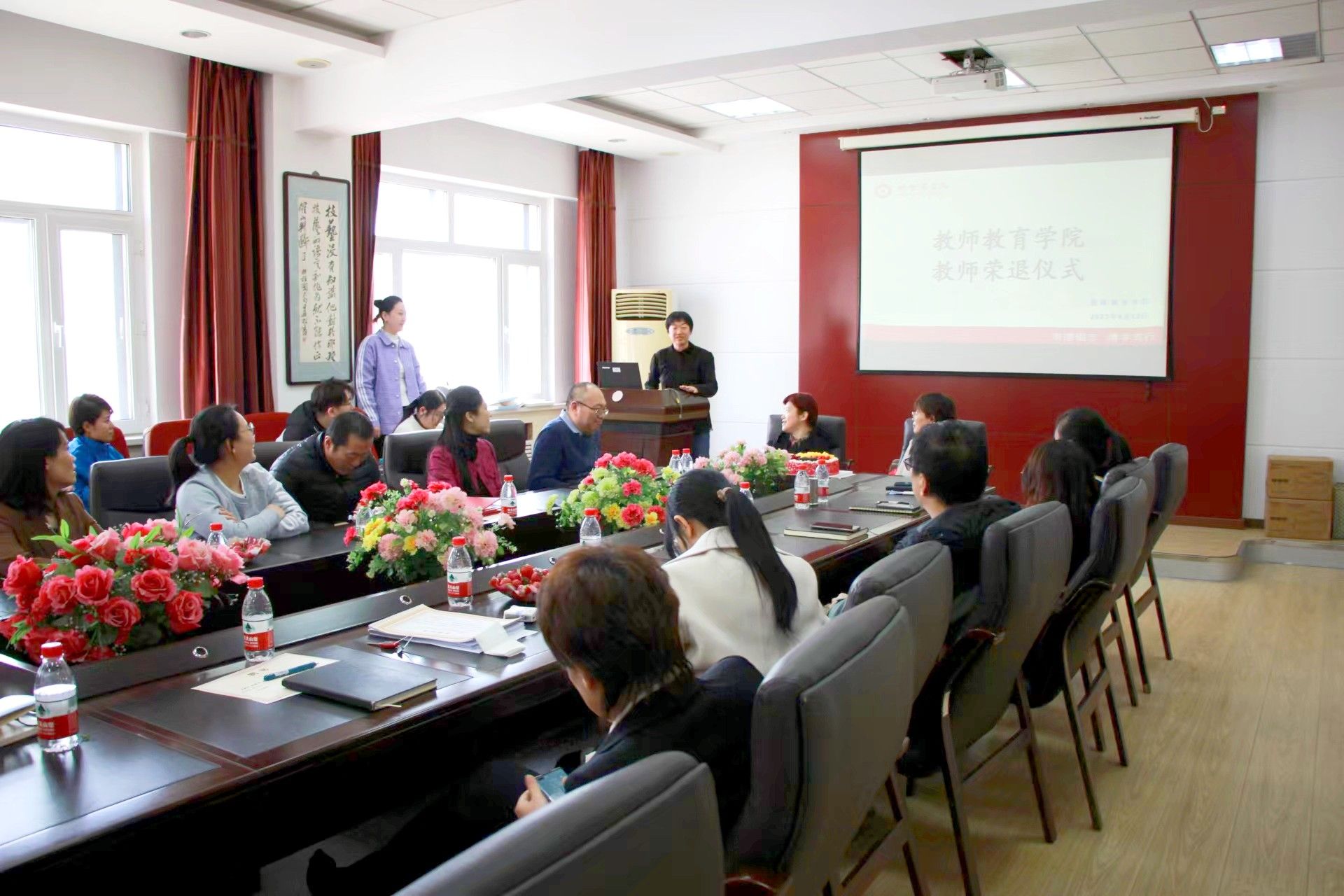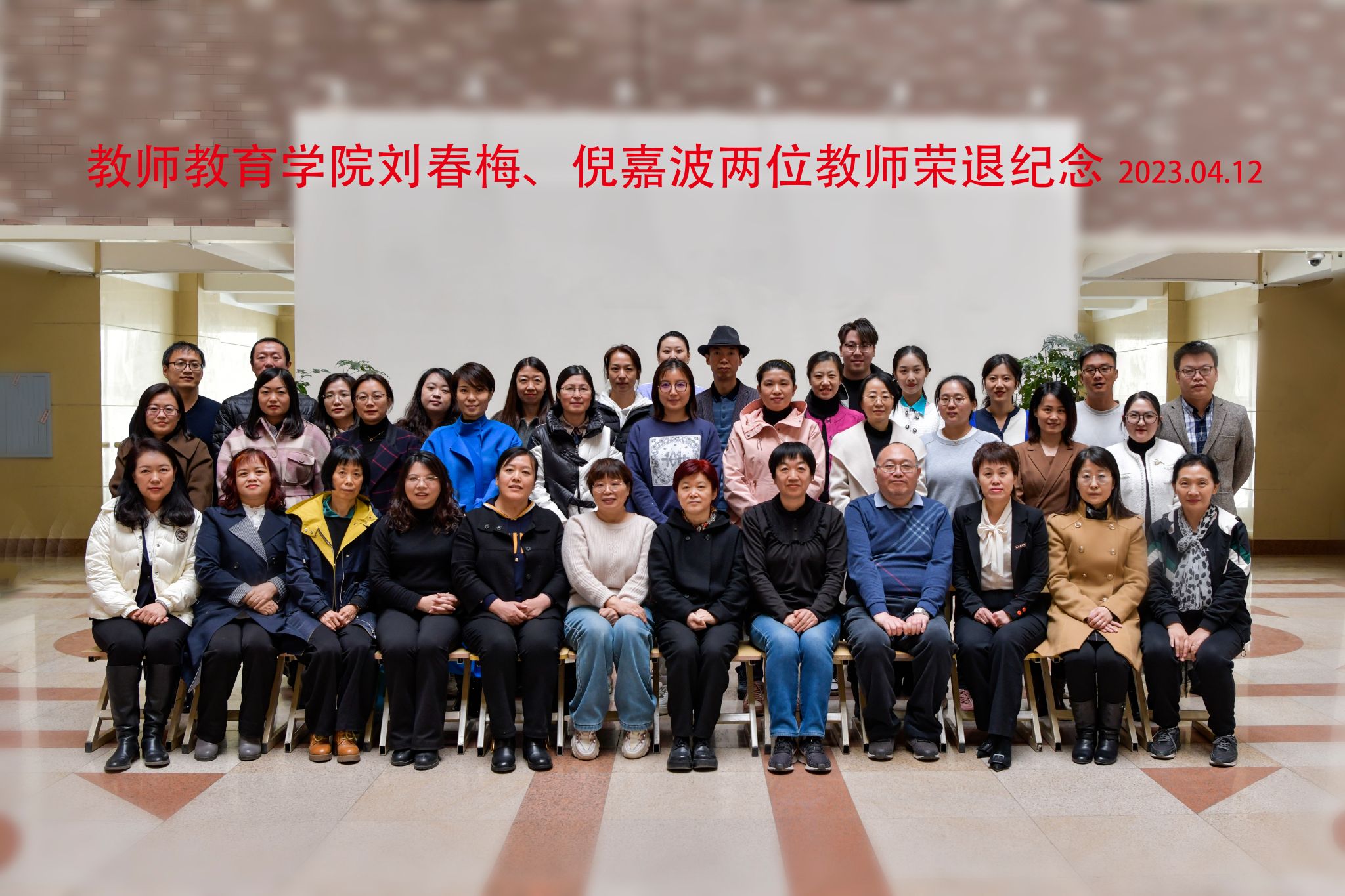 教师教育学院全体教师与倪嘉波、刘春梅二位老教师围坐畅谈,合影留念,仪式在温馨美好的氛围中结束。